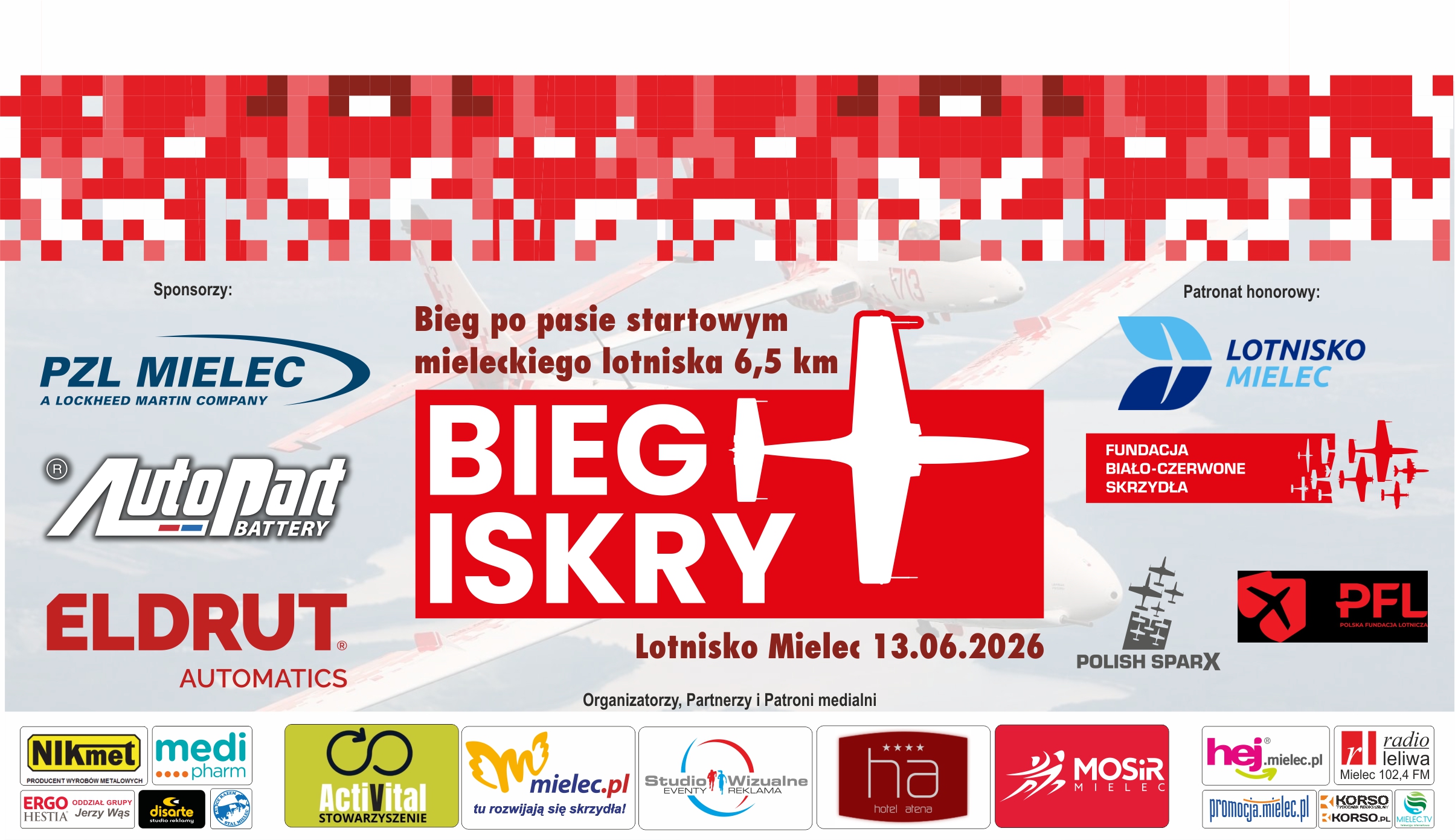 Miejscem startu, mety oraz dekoracji będą hangary Fundacji Biało-Czerwone Skrzydła. Uczestnicy biegu oraz wszyscy chętni będą mogli spędzić z nami ten czas i z bliska przyjrzeć się nie tylko Iskrze, ale wielu innym samolotom, które na co dzień latają na mieleckim niebem. Jesteśmy przekonani, że wszystkim udzieli się lotniczy klimat panujący w Mielcu.